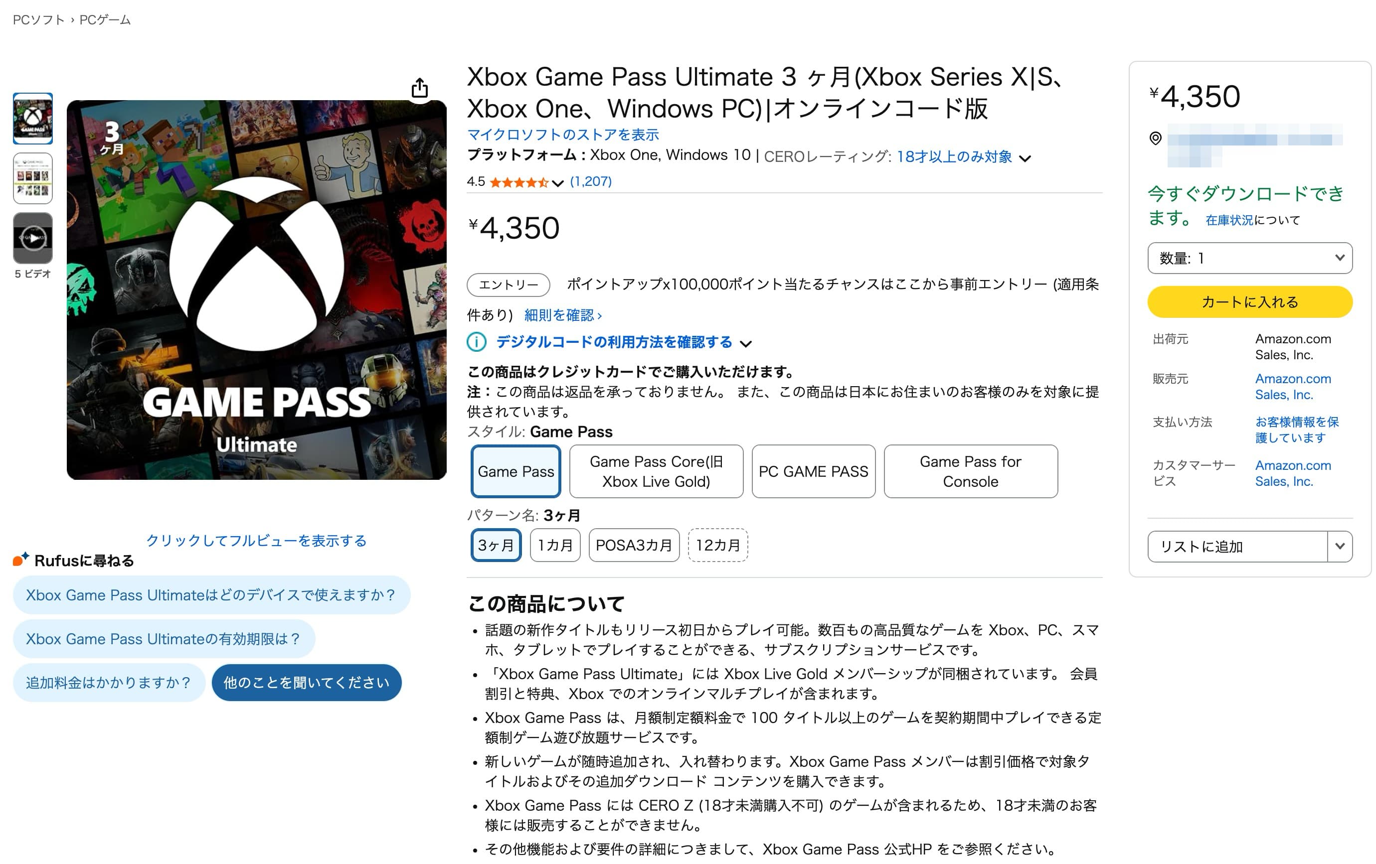 Amazonにて「Xbox Game Pass」が価格改定前の値段で販売中。「Ultimate」プラン3カ月利用券が4,350円で購入可能(2/3)