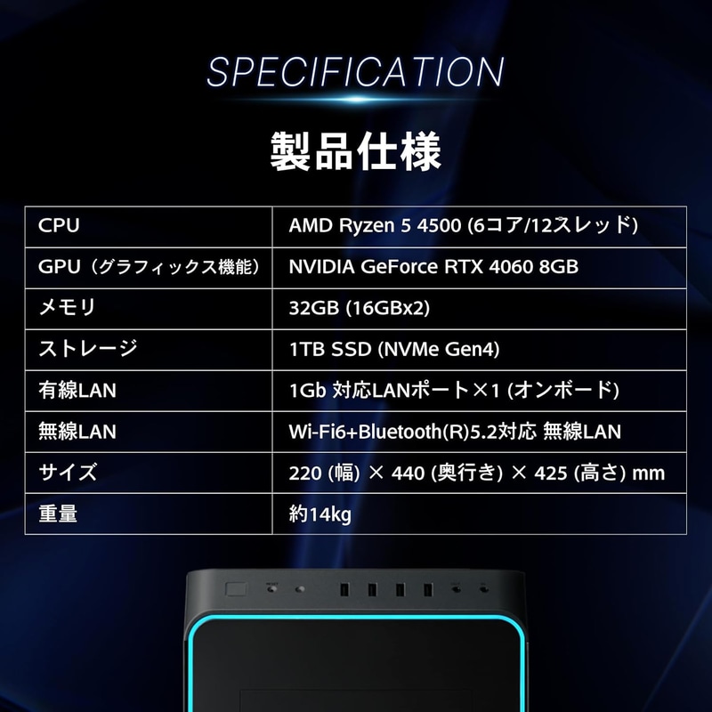 • ガレリア ゲーミングPC GALLERIA RM5R-R46 RTX 4060 Ryzen 5 4500 メモリ32GB SSD1TB Windows11 動画編集 2年保証 ガンメタリック14615-4611 R454631WAD2 Amazon