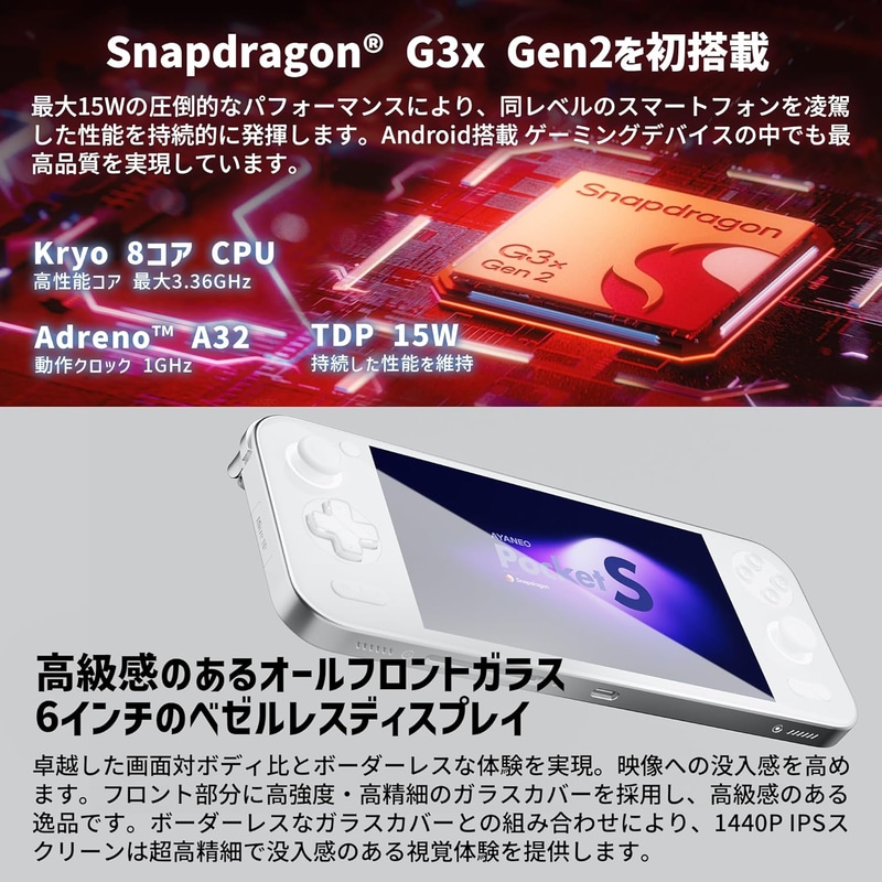 • AYANEO Pocket S 国内正規版 Android搭載ポータブルゲーミングデバイス 6インチ (Snapdragon G3x Gen2 1080P/16GB/512GB アイスソウルホワイト)