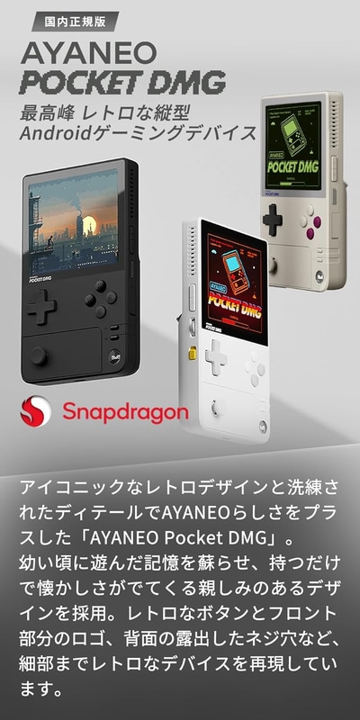 • AYANEO Pocket DMG 国内正規版 縦型Android ポータブルゲーミングデバイス 3.92インチSnapdragon G3X Gen2 有機ELディスプレイ搭載 Wi-Fi/Bluetooth5.3対応 278g (アークティックブラック, メモリ16GB/ストレージ512GB)