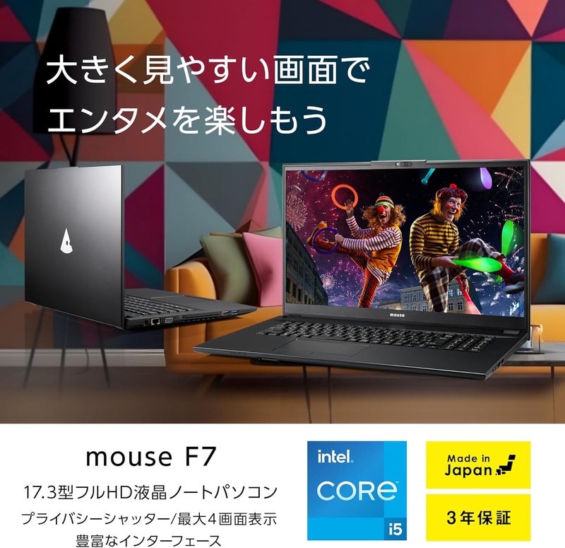 • mouse F7 【3年保証】 17.3インチ ノートパソコン (Windows 11 Core i5 32GB メモリ 500GB SSD WEBカメラ テレワーク ビジネス) F7I5I01BK3SIW1AZ