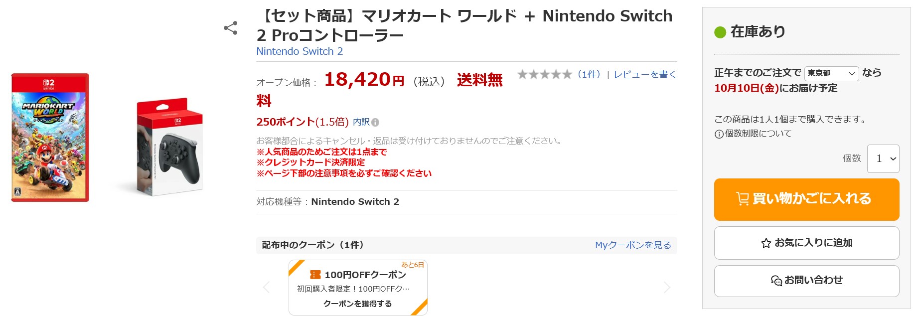 コジマネットにてSwitch2の先着販売が実施!