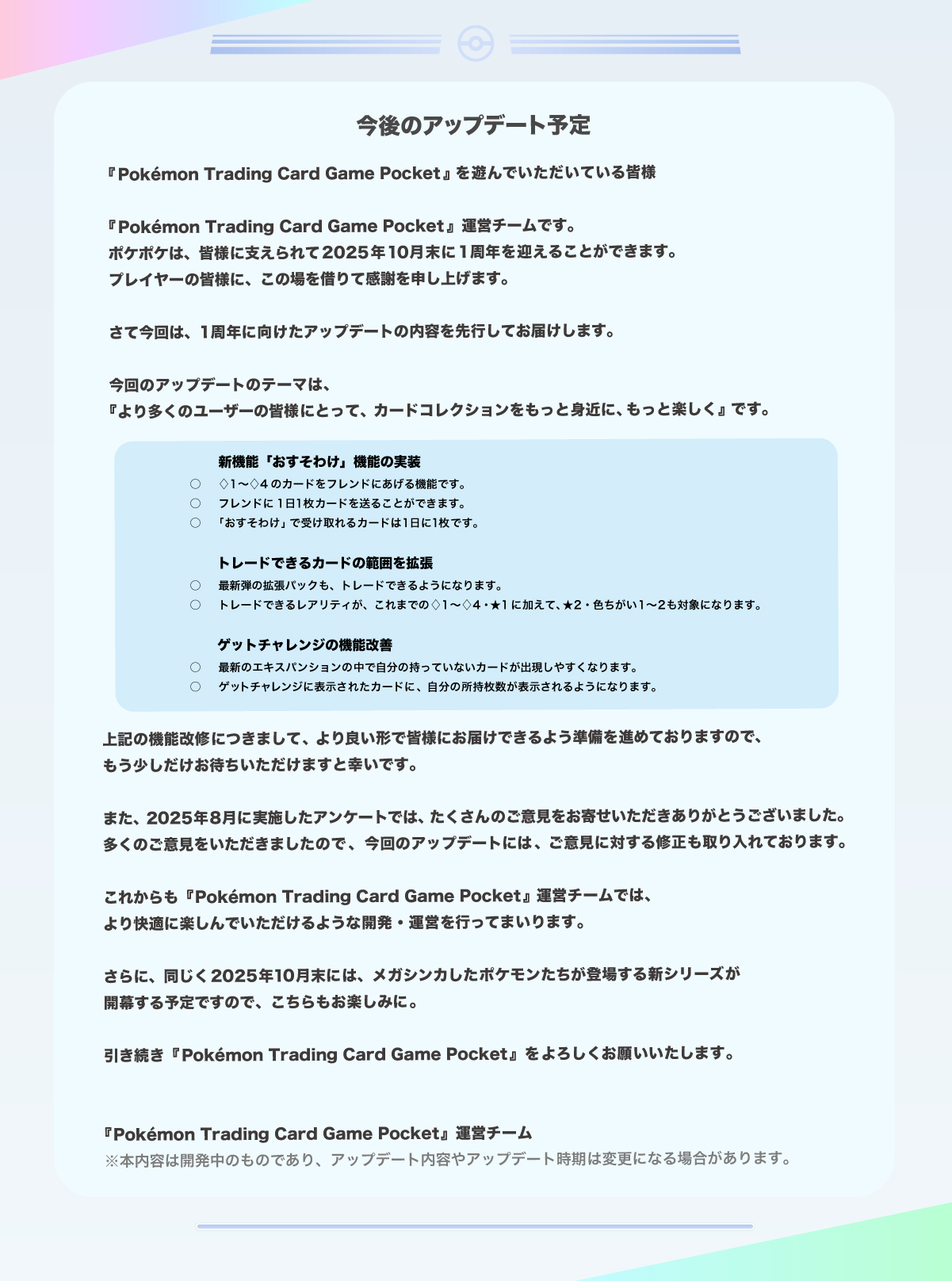 「ポケポケ」、メガシンカしたポケモンの新カードは10月末に登場! 今後のアップデート予定が発表(2/2)
