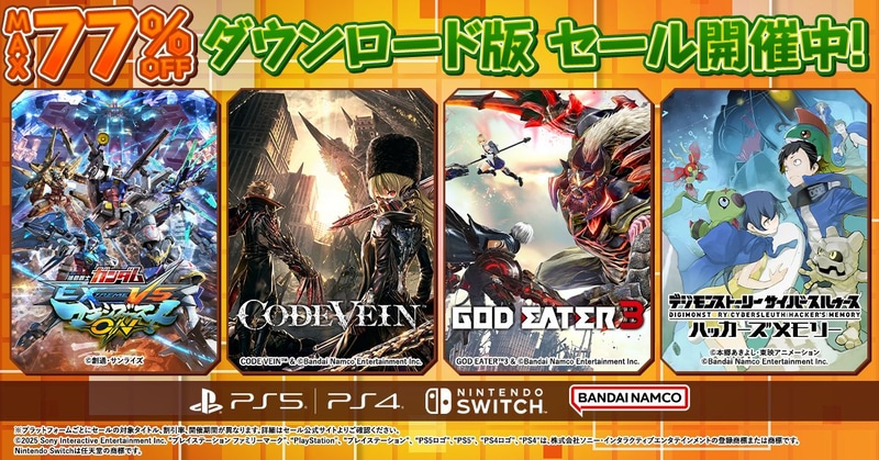 (C)創通・サンライズCODE VEIN TM & (C)Bandai Namco Entertainment Inc.GOD EATER TM 3 & (C)Bandai Namco Entertainment Inc.(C)本郷あきよし・東映アニメーション(C)Bandai Namco Entertainment Inc.