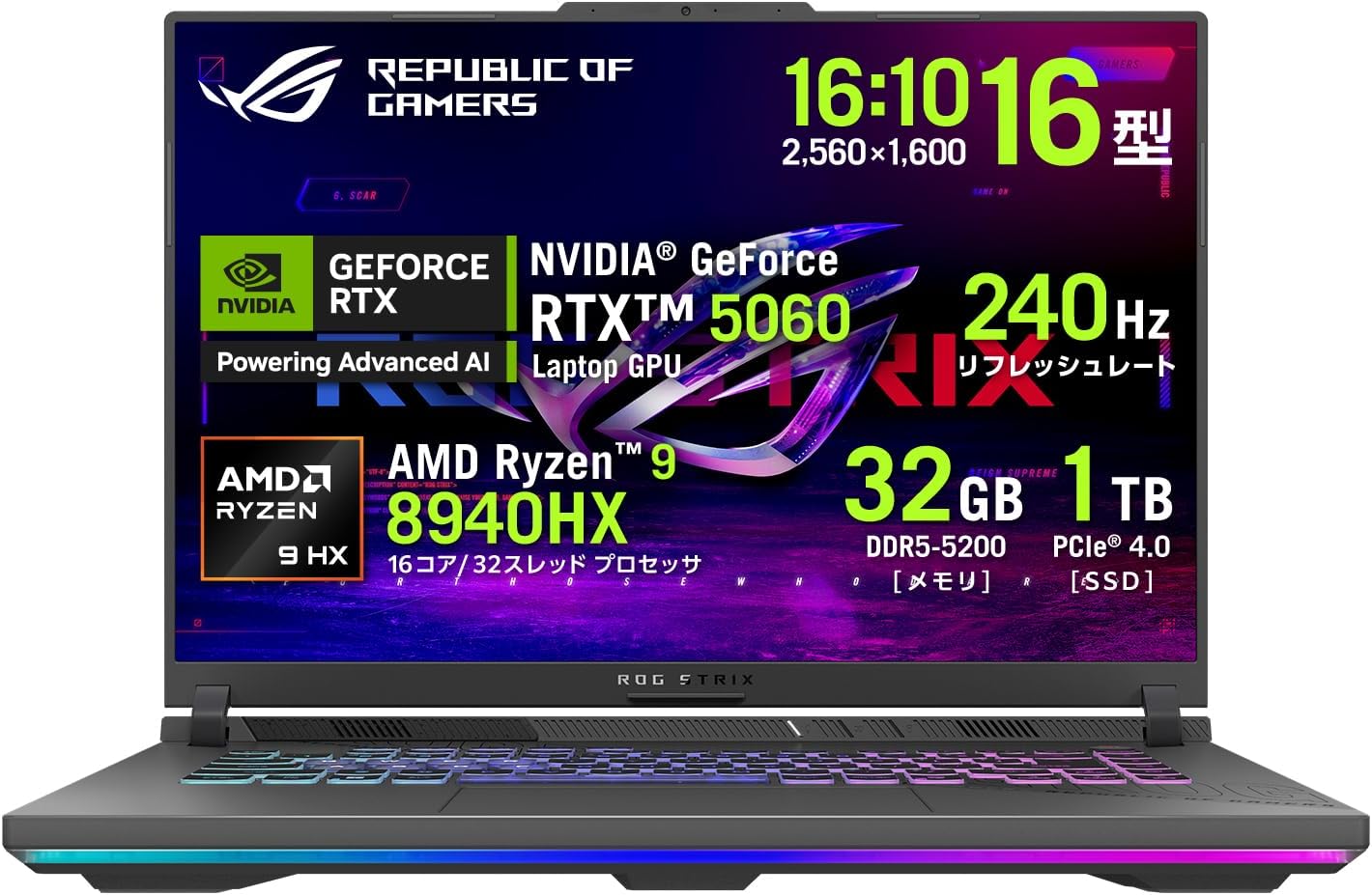• ASUS ゲーミングノートPC ROG Strix G16 G614PM 16インチ RTX 5060 AMD Ryzen 9 8940HX メモリ 32GB SSD 1TB リフレッシュレート240Hz RGB イルミネートキーボード Windows 11 動画編集 PC Game Pass 3ヶ月利用権付き エクリプスグレー G614PM-R9R5060G
