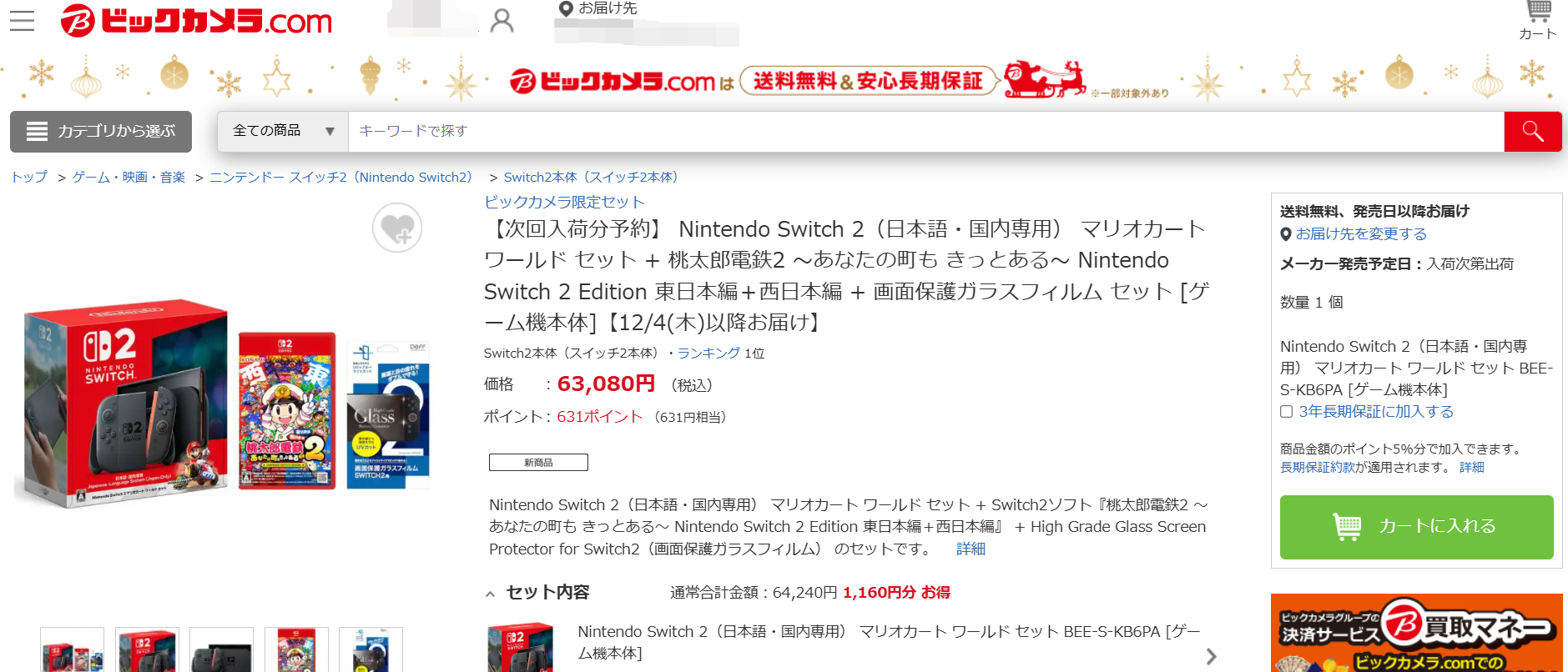 Switch2、ビックカメラ.comにて先着販売。12月4日以降お届け(2/3)