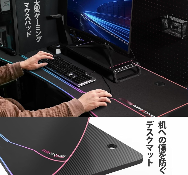• GTRACING ゲーミングデスク パソコンデスク 「メーカー二年保証」 デスクマット付き 炭素繊維天板(2割天板) モニターアーム対応 頑丈なフレーム安定 組立簡単 机 オフィスワークテーブル pcデスク ワーク ゲームテーブル 作業机 幅140cm×奥行60cm 耐荷重100kg 新開発作品 カラフル