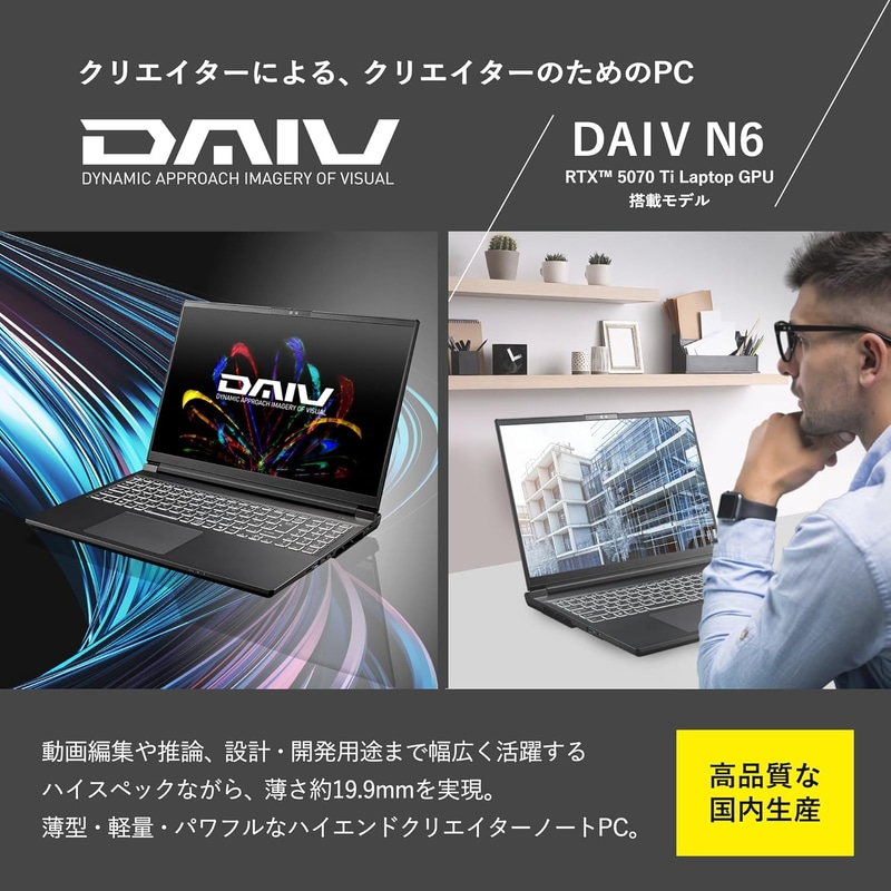 • mouse 【RTX 5070 Ti/NVIDIA Studio認定製品】クリエイターPC ノートPC DAIV N6 (Core Ultra 7 255HX 32GB メモリ 1TB SSD Windows 11 Pro 16インチ WQXGA 動画編集 CAD 3DCG 3年メーカー保証) N6I7G7TBK3SKW105AZ