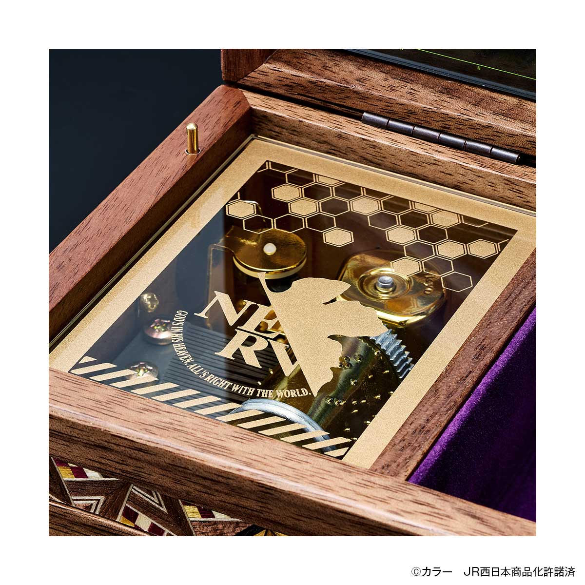 ※掲載している写真は開発中のものです。実際の商品とは多少異なる場合があります。※天然木を用いて手作りされるため色合いなどが写真とは異なります。また、寄木の柄のパターンも商品ごとに異なります。(C)カラー JR西日本商品化許諾済