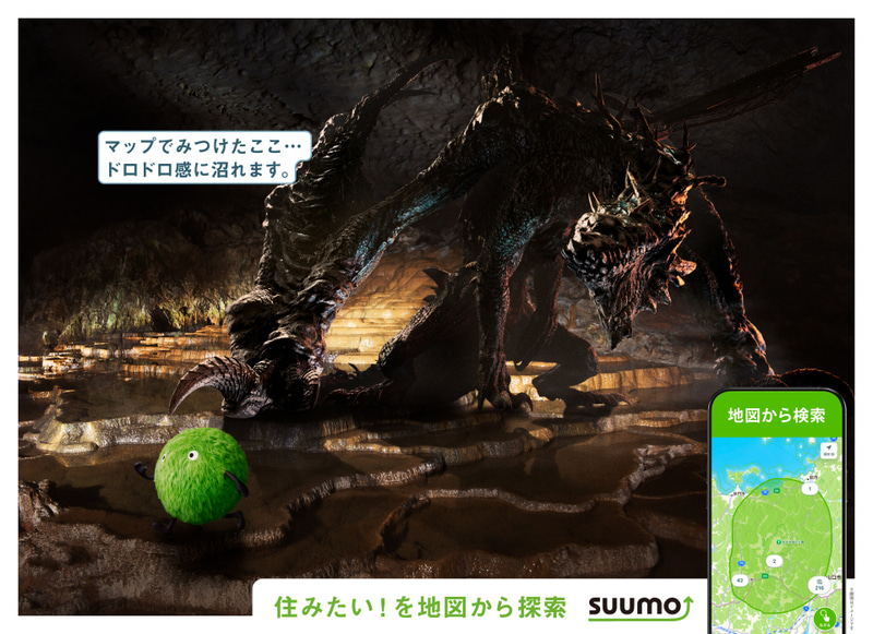 「SUUMO」、「モンスターハンター」とコラボした駅広告を新宿駅などで2月8日まで掲出(4/8)