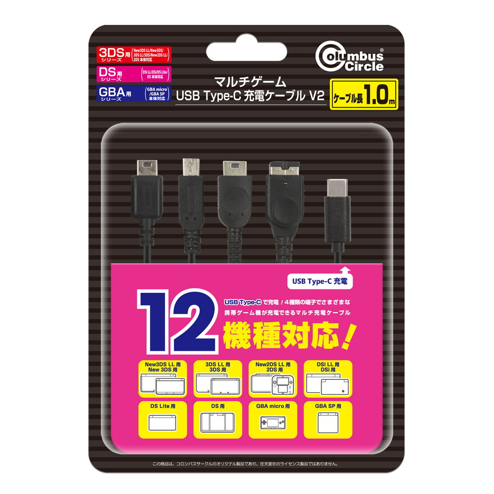 コロンバスサークル(GBミクロ/GBASP/DSiLL/DSi/DS Lite/DS/NEW3DSLL/3DSLL/NEW3DS/3DS/NEW2DSLL/2DS用)マルチゲームUSB Type-C 充電ケーブル V2