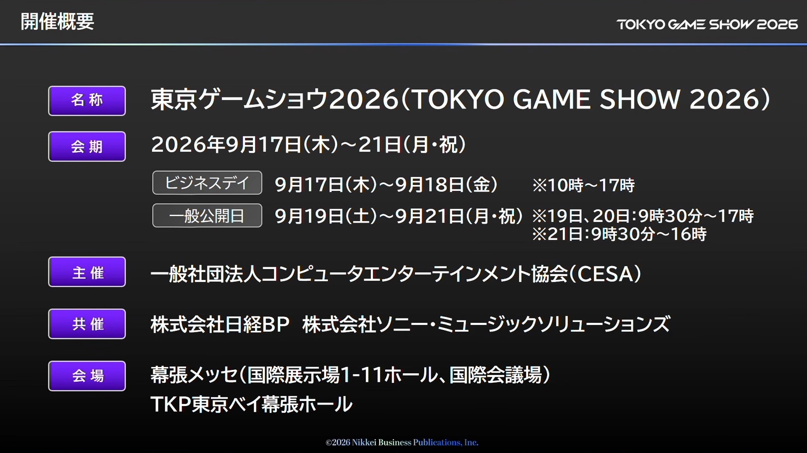 「東京ゲームショウ2026」史上初の5日間開催、来場者数は30万人を想定。TGS30周年企画も実施決定(2/10)