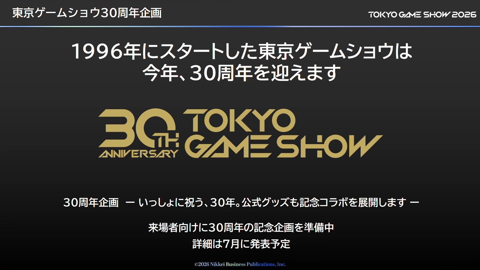 「東京ゲームショウ2026」史上初の5日間開催、来場者数は30万人を想定。TGS30周年企画も実施決定(7/10)