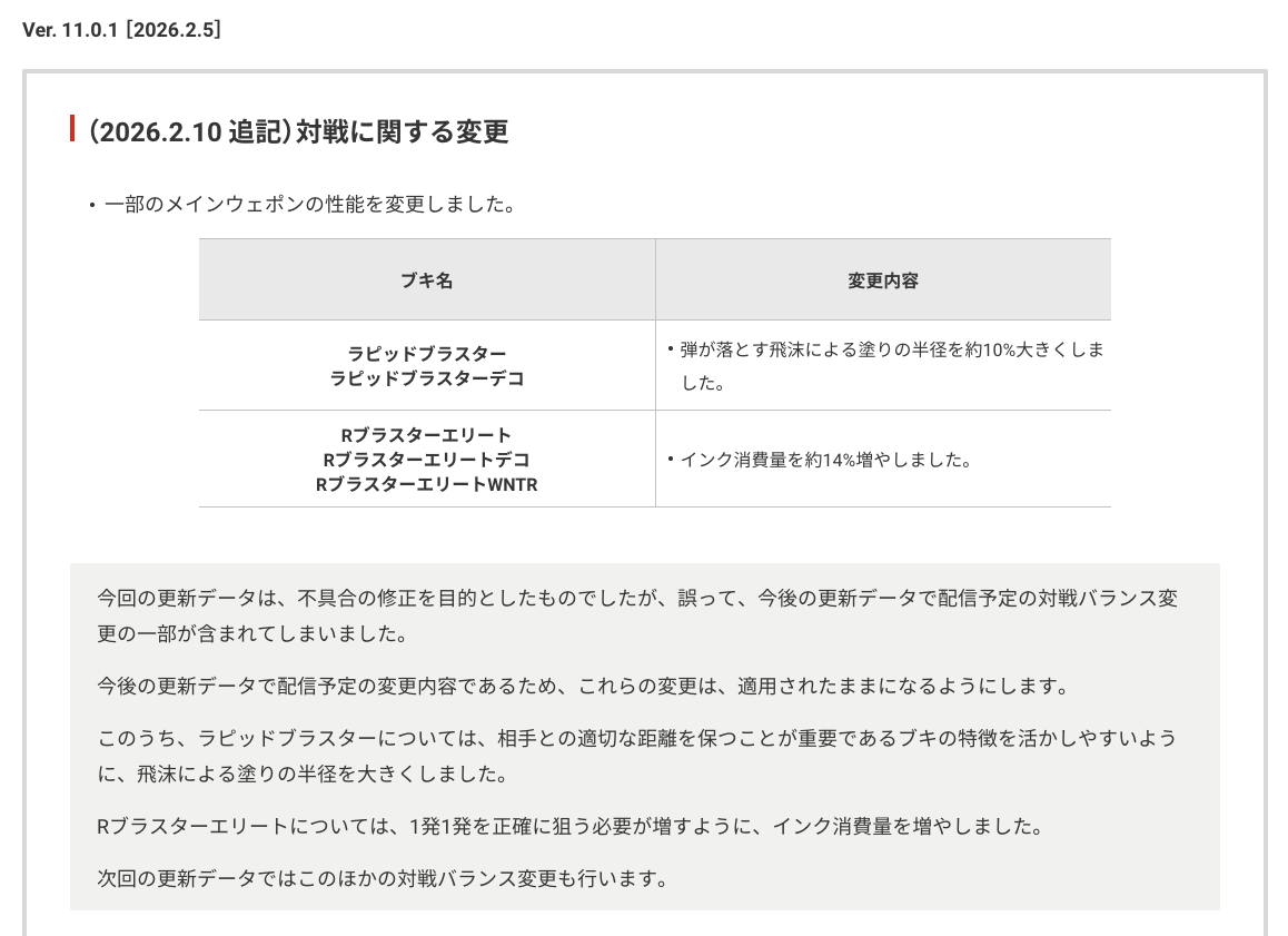 「スプラ3」の更新データ「Ver.11.0.0」配信開始! バトルに関わるシステムやバランス変更を実施
