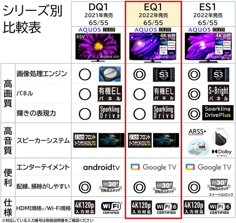 • シャープ 55V型 有機EL テレビ AQUOS OLED 4T-C55EQ1 4K チューナー内蔵 Google TV