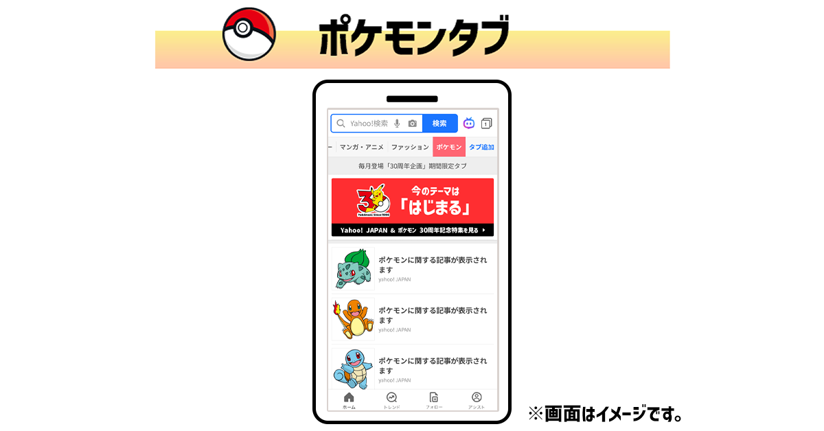 「Yahoo! JAPAN」アプリに“ポケモンタブ”が出現! 30周年コラボが開催(2/7)