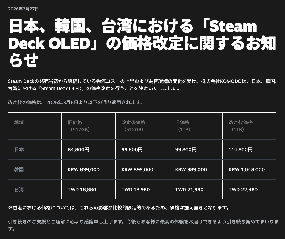 Steam Deckに有機ELディスプレイ搭載の新モデルが登場。11月17日に発売