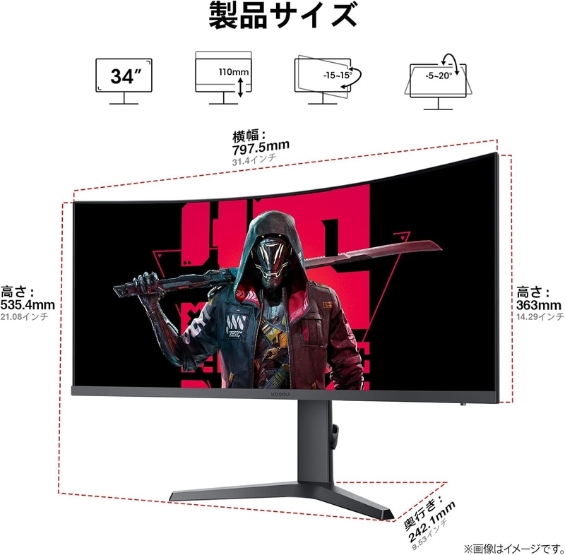 • KOORUI曲面 ゲーミングモニター 34インチ UWQHD超ワイドスクリーン180Hz 1ms 3440x1440 1000Rの湾曲率 VA非光沢 sRGB100% /高さ調整/HDMI/DP/Adaptive Sync対応 PIP/PBP分屏機能