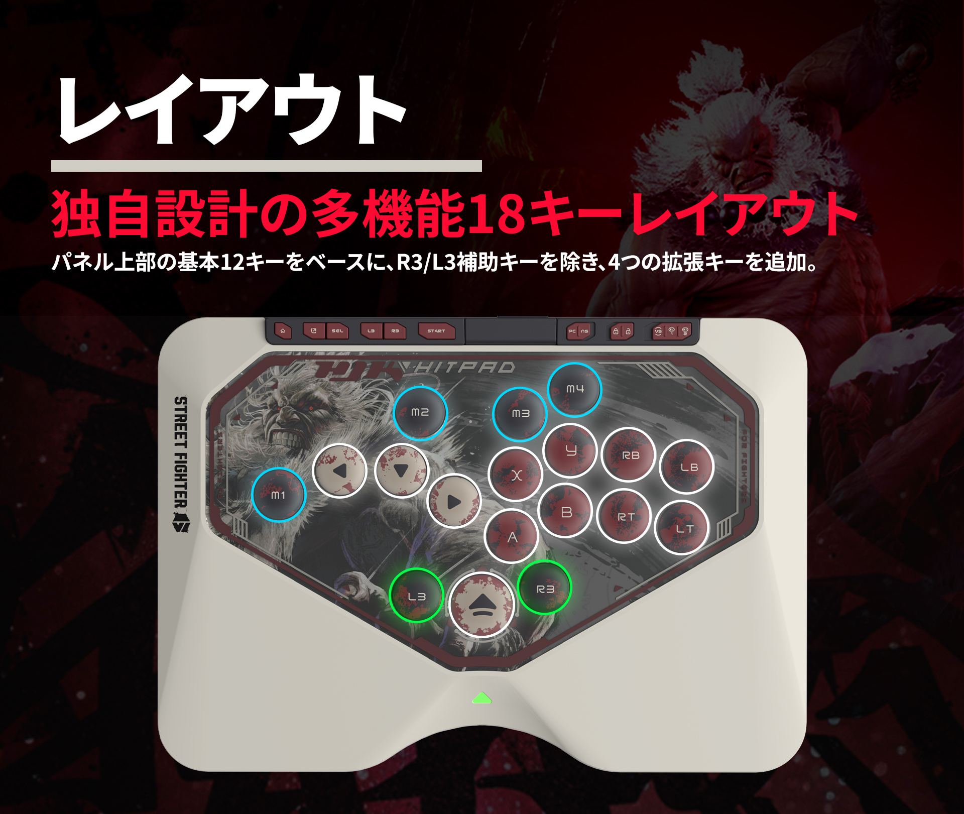 「スト6」豪鬼デザインのレバーレス「HJK HITPAD」予約受付開始! 多機能18キーレイアウト&格闘ゲーム専用設計スイッチ採用の上位モデル(5/16)