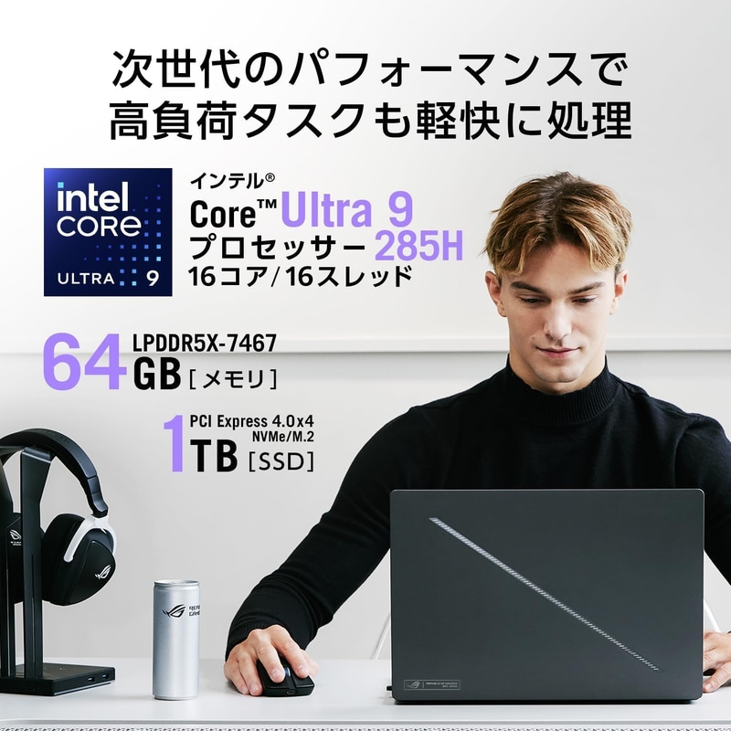 • ASUS ゲーミングノートPC ROG Zephyrus G16 GU605CW 16.0型 RTX 5080 Core Ultra 9 285H メモリ 64GB SSD 1TB リフレッシュレート240Hz RGB イルミネートキーボード Windows 11 動画編集 PC Game Pass 3ヶ月利用権付き GU605CW-U9R5080