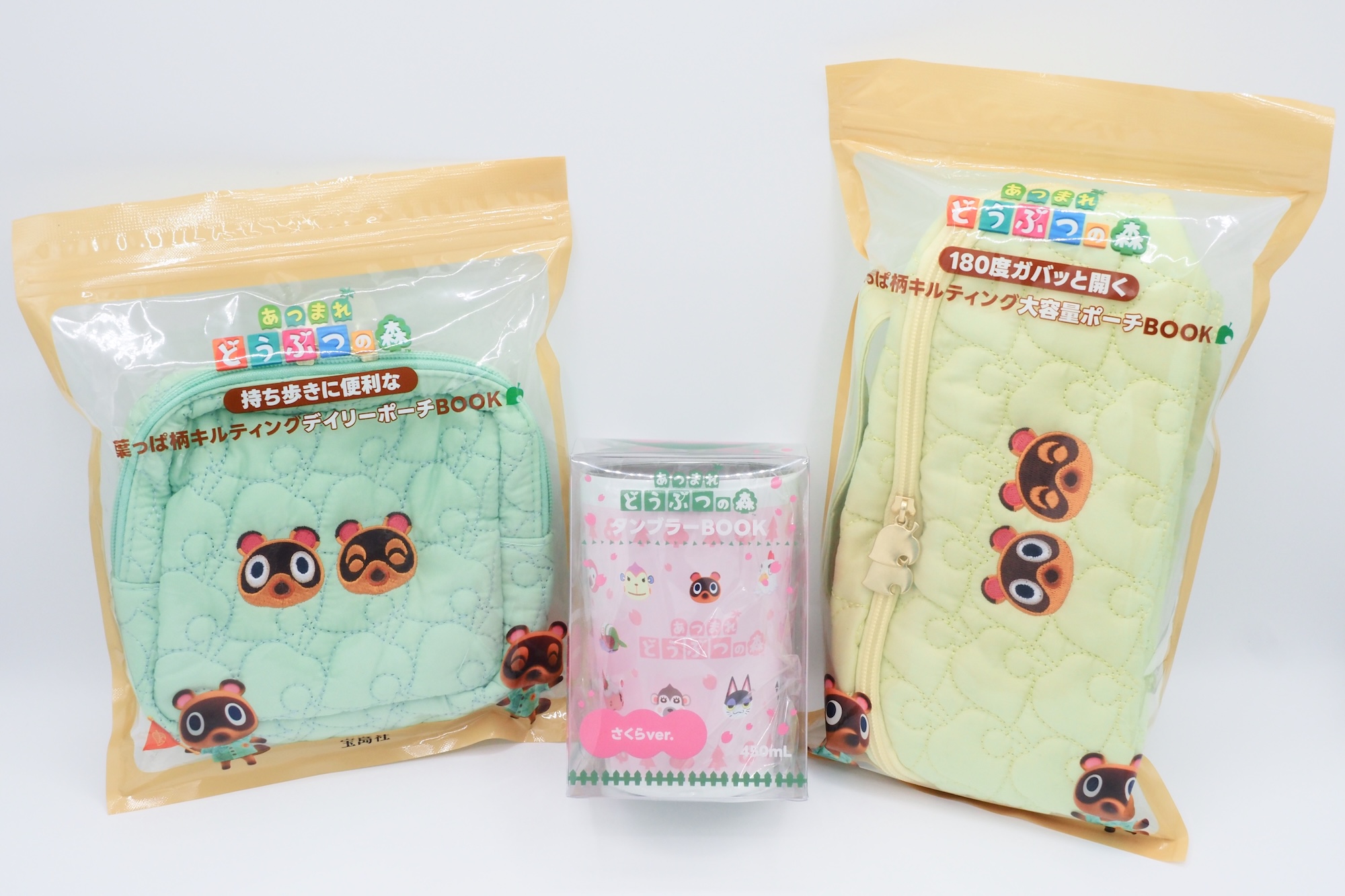 「あつまれ どうぶつの森」葉っぱ柄キルティングポーチ2種とさくら・喫茶ハトの巣タンブラー、3月31日発売