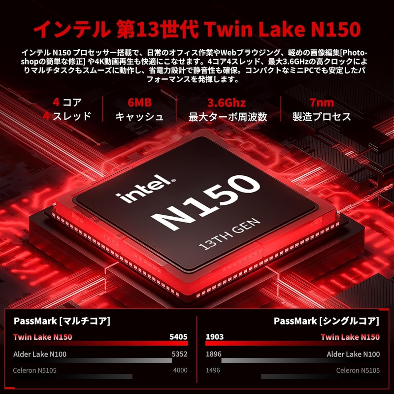 • ミニpc ディスプレイ付き【Intel N150搭載】16GB DDR4+512GB SSD キーボード付き NVMe拡張対応 mini pc 4K×2画面出力・HDMI/DP/Type-C・Win11 Pro ミニパソコン 自動調整冷却ファン WIFI6/BT5.2 高速LANポート付き 小型pc USB3.0×2 36WPD充電 超小型 高性能 デスクトップpc 企業用/業務用/在宅用に最適