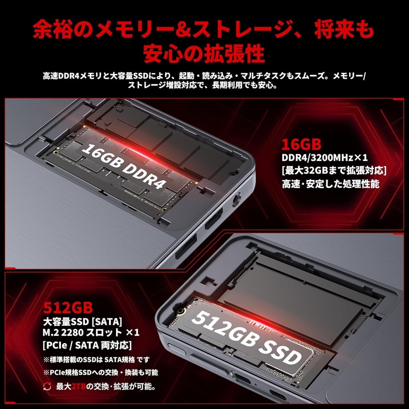 • ミニpc ディスプレイ付き【Intel N150搭載】16GB DDR4+512GB SSD キーボード付き NVMe拡張対応 mini pc 4K×2画面出力・HDMI/DP/Type-C・Win11 Pro ミニパソコン 自動調整冷却ファン WIFI6/BT5.2 高速LANポート付き 小型pc USB3.0×2 36WPD充電 超小型 高性能 デスクトップpc 企業用/業務用/在宅用に最適