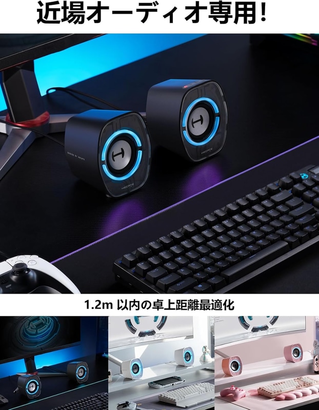 • Edifier 【エディファイア】 G1000 II PC スピーカー 2.0ch RGB 卓上小型 音質高 | ゲーミングスピーカー PS5 Pro/PS5シリーズ/PS4/Switch 2/Switchシリーズ対応 | Bluetooth/USB/3.5mm AUX ワイヤレス・有線接続両対応 | ゲーム/映画/音楽 3EQモード | ConneX専用アプリ対応 | 2台セット ブラック